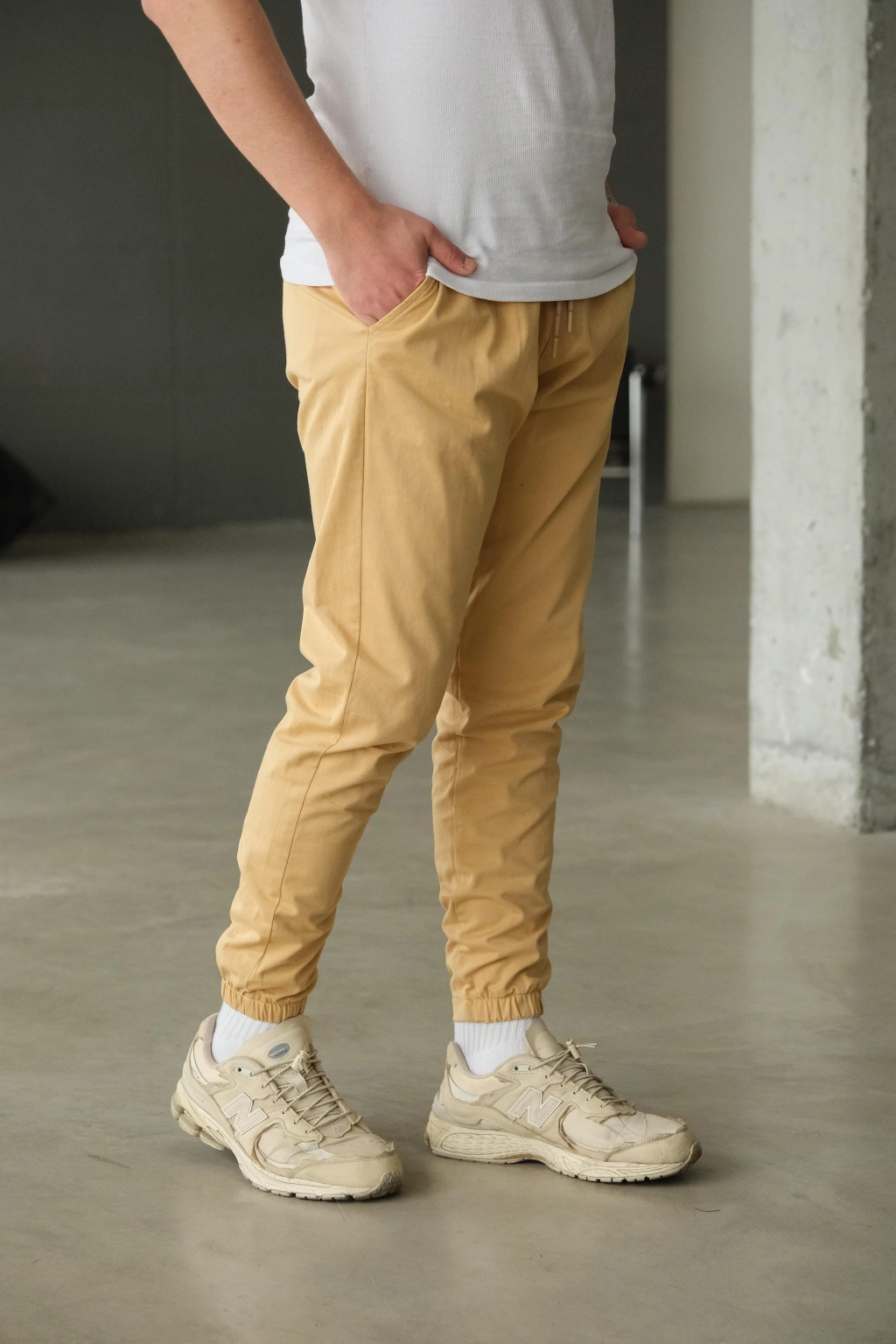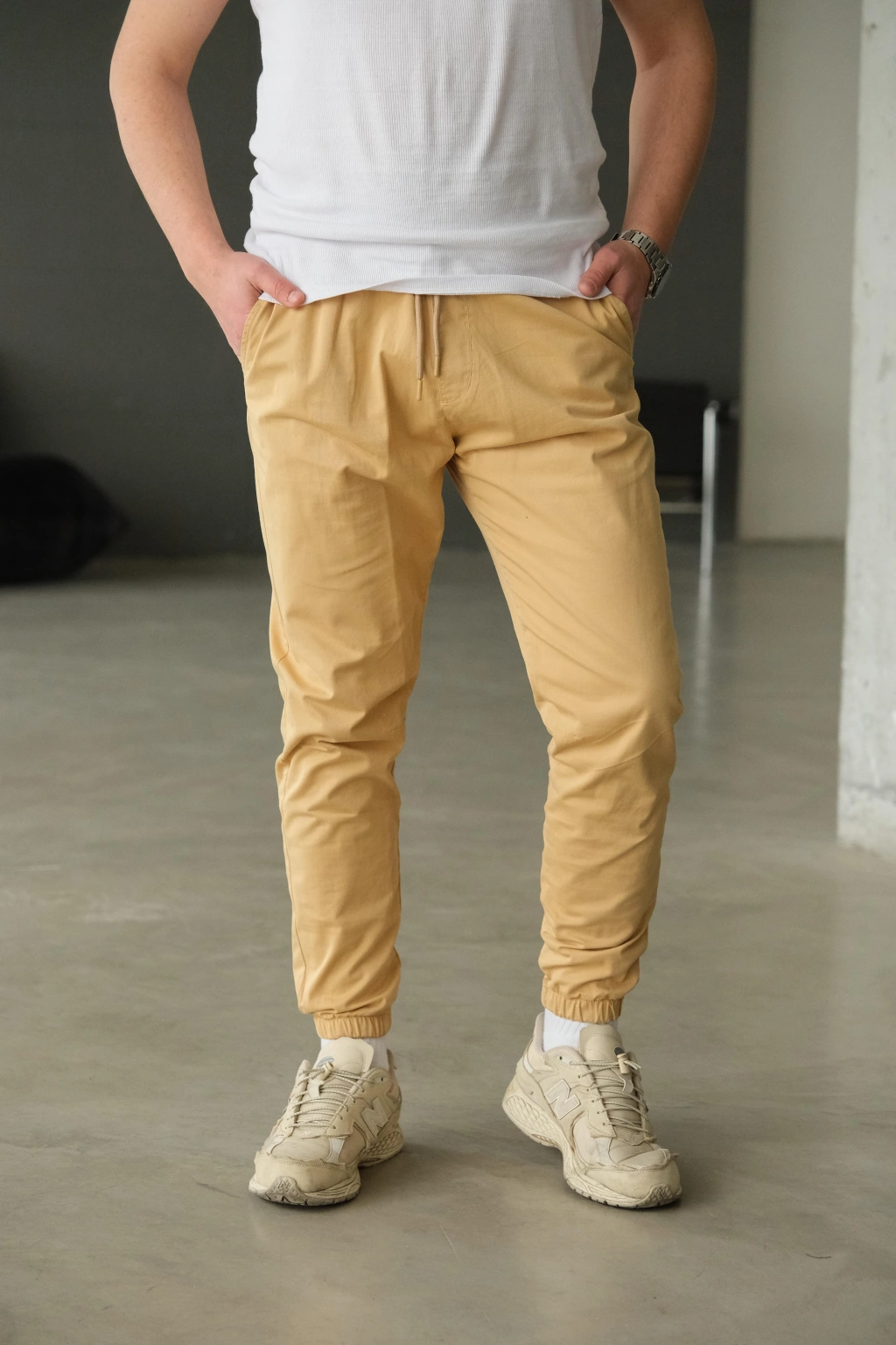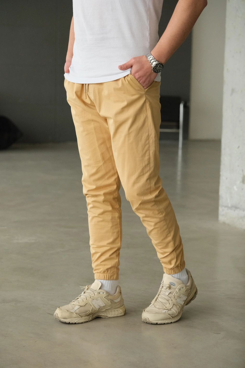 Bej Paça Lastikli Pantolon