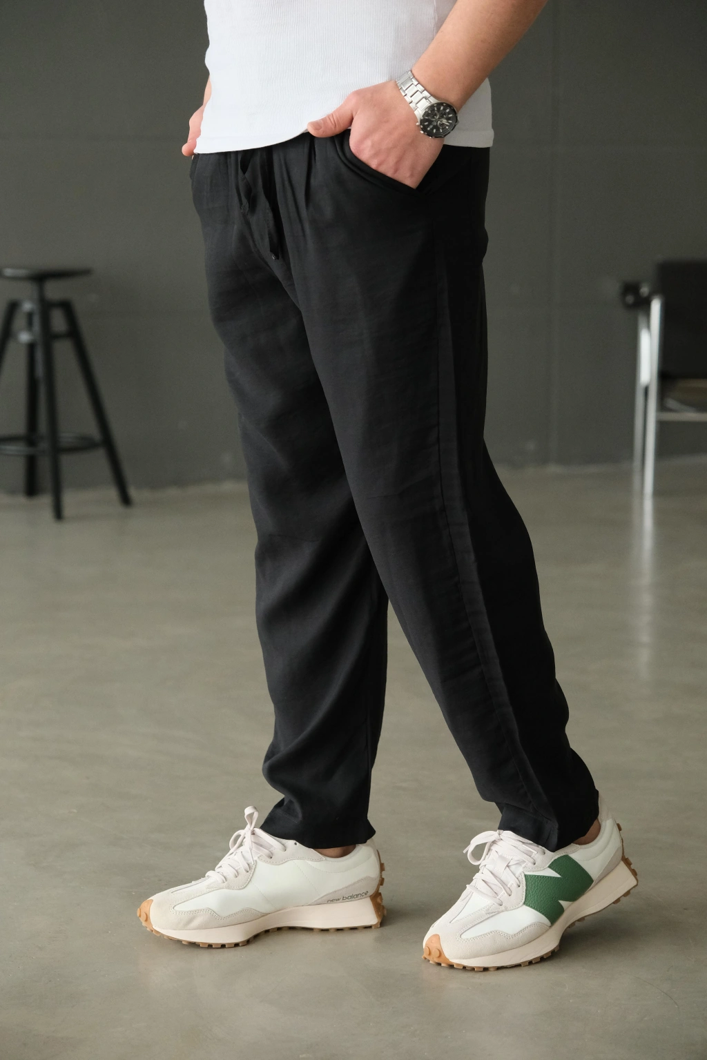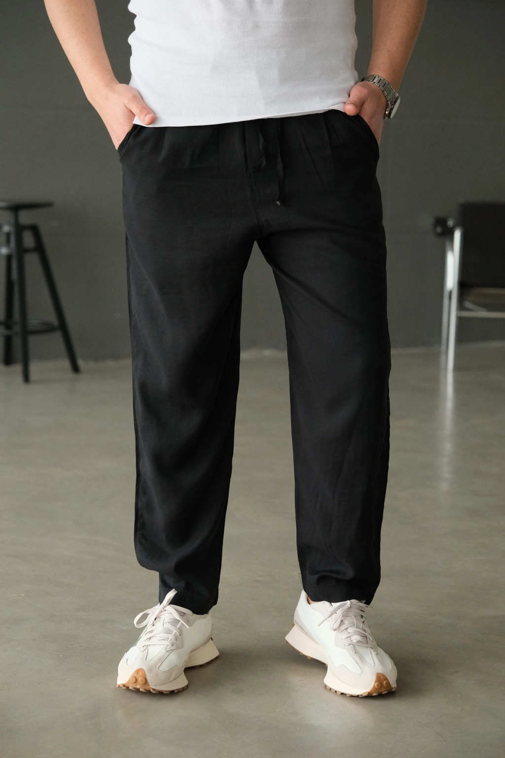 • Siyah İtal Kumaş Bol Jogger Pantolon